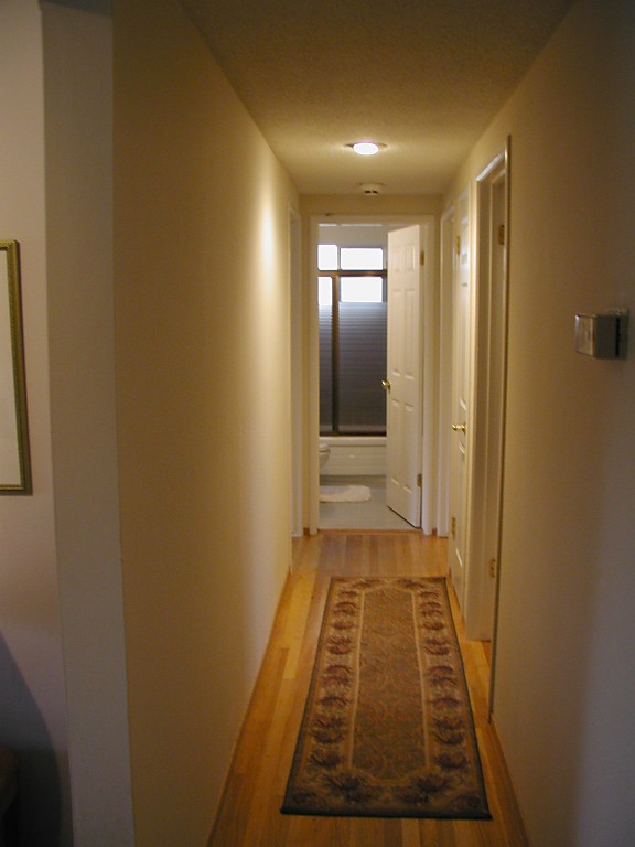 | Hallway with a bathroom