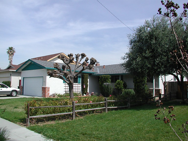 | A view from the back yard sliding door across the