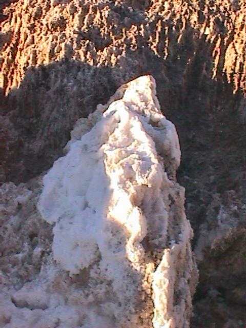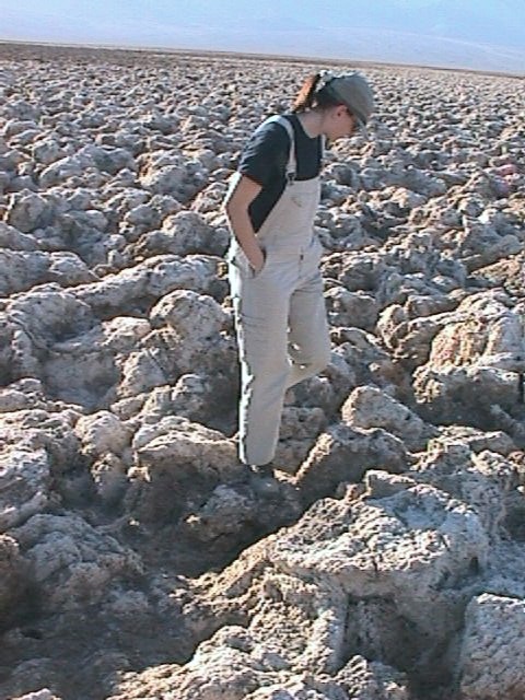 Death Valley (Údolí Smrti) má jméno pod kterým jsem si vždycky představovala bezútěšnou hromadu písečných přesypů, kam nikdo nejezdí, protože je tam přišerný vedro. Vedro samozřejmě je. Teď, v listopadu, to docela jde, mohlo být tak něco málo přes 25 stupňů, v červenci mají až 45°. Údolí má 13 760 kilometrů čtverečních, nejvyšší místo je Telescope Peak (3386 m), nejnižsí místo je Badwater (-86 m). V údolí najdete spoustu zajímavých míst. U Stovepipe Wells Village jsou několik desítek metrů vysoké písečné duny, u Badwater Čertovo golfové hřiště. Pověst praví, že se jakýsi golfista vytahoval, že umí dobře hrát a čert ho vzal na svoje hřiště. Vypadá to asi jako oraniště s hlubokou orbou, ale všechno jsou to vlastně solné sloupy. Pevné a ostré, padat na to se nedoporučuje. V některých místech jsou sloupy prasklé a pak je vidět dutinka s bílými krystaly.