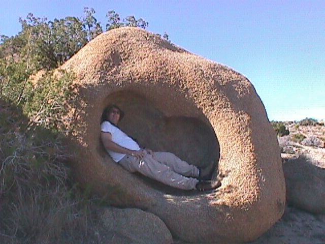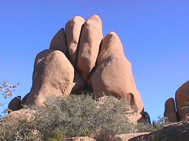 Kromě kaktusů jsou v Joshua Tree krásné skály. Chytrá kniha tvrdí, že je to monozoit, vypadá to