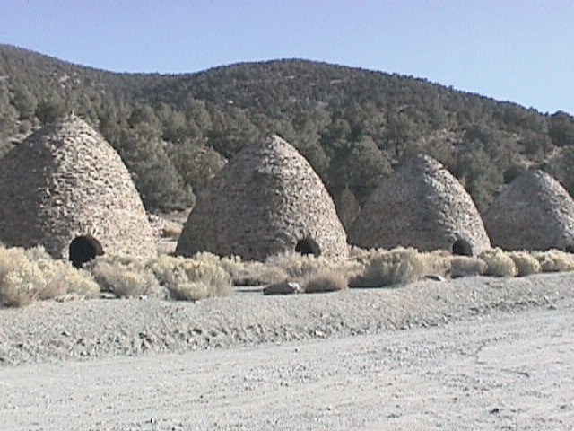Zvolili jsme statečně cestu skrz Wildrose Canyon, která není ani moc široká, ani moc upravovaná (do Údolí se dá jet i po normální silnici). Wildrose Canyon se klikatí až pod Telescope Peak (3386 m) a prochází pásem stromů. Sid najednou zastavil u takových zvláštních kamenných staveb, co vypadaly jako obrovské úly. Měla jsem hádat, co to je, ale fantazie mi na tohle rozhodně nestačila. Jsou to milíře na dřevěné uhlí.